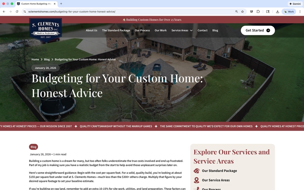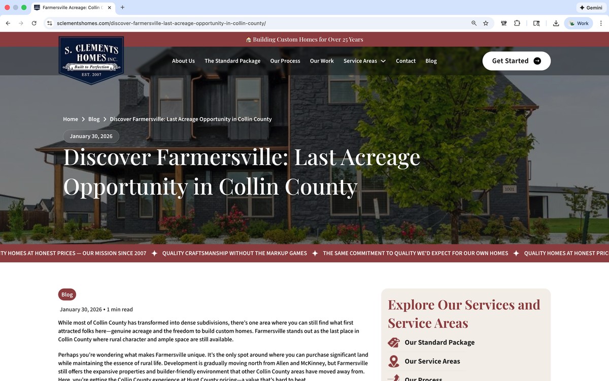 Mike Hollaway Custom Homes’ extensive professional photography library and three decades of award-winning projects provided rich material for training our agentic AI system. This deep knowledge base enabled us to create content that authentically captures their voice, expertise, and craftsmanship. The result is a website and ongoing content strategy—including daily blog posts and social media—that accurately and honestly demonstrates their work which resonates with customers their luxury home market.
